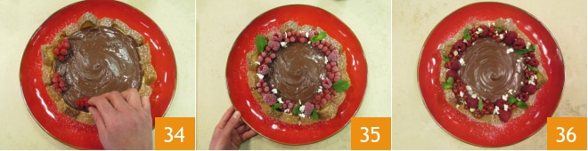 e decore com groselhas 34, framboesas e torrone triturado 35. Complete com algumas folhas de hortelã e sua coroa de pandoro com Nutella® está pronta 36!
