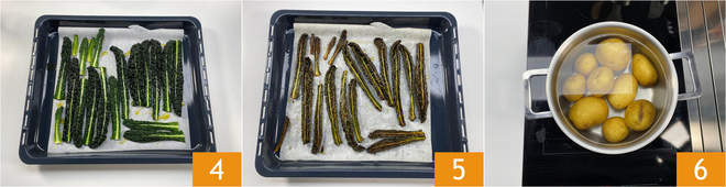 Transfira para uma assadeira com papel manteiga e asse em forno ventilado, já aquecido, a 220°, por 15-20 minutos 4 5. Você também pode preparar o creme de batatas. Lave e depois cozinhe as batatas por cerca de 30-40 minutos, dependendo do tamanho 6; lembre-se de calcular o tempo a partir da fervura.