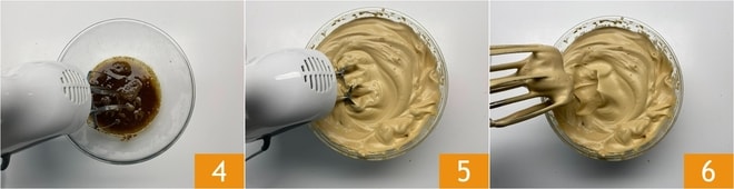 Comece a trabalhar com as batedeiras elétricas, inicialmente em velocidade baixa para evitar respingos 4. Aumente a velocidade e em poucos minutos o creme começará a crescer 5. Assim que ficar claro e muito espumoso, você poderá desligar a batedeira 6, levará cerca de 10 minutos.