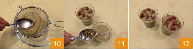 Quando tiverem obtido uma mistura cremosa, coe-a com uma peneira para deixar o creme mais fluido 10. Transfira o creme para copinhos ou terrinas individuais e decore com o cotechino e as lentilhas cozidas que haviam sido reservadas anteriormente 11. Pronto: aqui está o seu creme de lentilhas com cotechino crocante 12!