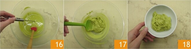 Monitorando a temperatura, misture até atingir 22° 16. Quando atingir essa temperatura, o creme vai engrossar. Deixe descansar por 12-14 horas a uma temperatura entre 22 e 24°. O creme de pistache está pronto para ser saboreado 18.