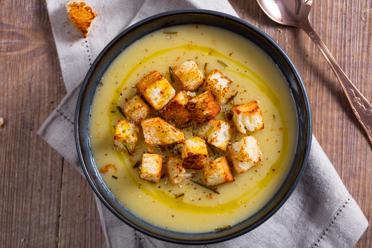 - Creme de alho-poró com croutons saborosos