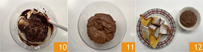 Misture delicadamente com a ajuda de uma espátula 10 até obter uma consistência homogênea 11. Sua creme para pandoro de chocolate está pronta para ser servida 12!