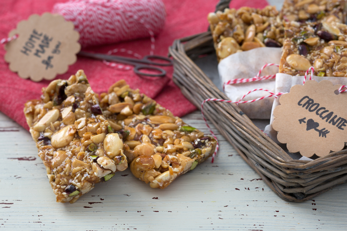 O crocante é uma preparação doce típica de várias regiões da Itália, feita em várias versões dependendo das nozes utilizadas: Crocante de amêndoas, avelãs ou uma mistura de nozes como nesta receita. Certamente você já teve a oportunidade de provar essa iguaria, que não é apenas um doce natalino, mas pode ser encontrada sempre nas feiras e nos mercados, especialmente no período de inverno. Atrai com seu brilho e gostosura: muitas nozes deliciosas torradas unidas por açúcar caramelizado. Descubra conosco como preparar o crocante em casa, para servir em lindas barras, perfeitas também para presentear nos seus cestas de Natal faça você mesmo junto a: