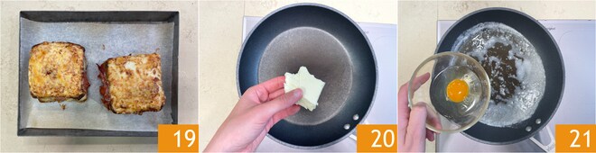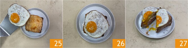 Finalize o croque madame colocando o ovo por cima 2526 e sirva imediatamente 27.