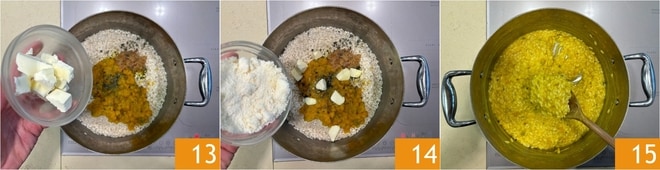 Finalize com manteiga 13 e Parmigiano Reggiano DOP ralado 14. Misture para incorporar tudo 15.