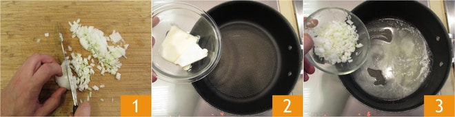 Para preparar os croquetes de presunto, pique finamente uma cebola 1. Derreta a manteiga em uma panela 2 e refogue a cebola por 10 minutos em fogo médio baixo 3.