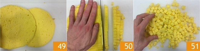Assim, você obterá 2 discos 49. Corte um disco em cubos de cerca de 1 cm 50, para criar as flores de mimosa 51.