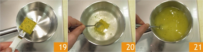 Para utilizar o caldo vegetal, recomendamos dissolver um cubo de 30 g em 1 litro de água 19. Mexa bem até que se dissolva 20. O caldo vegetal está pronto para ser utilizado 21!