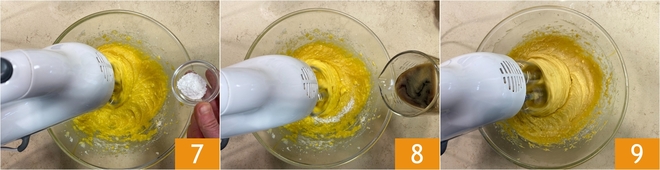 Por fim incorpore o fermento 7 e o café frio 8. Continue a bater com as batedeiras elétricas até que o café seja completamente absorvido 9.<\/p>