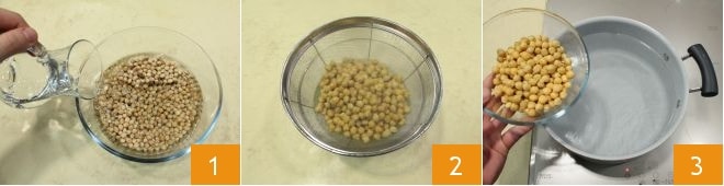Para preparar o curry vegetariano, comece pelos grãos-de-bico, tomando uma tigela grande e colocando-os de molho em água fria 1: deixe-os assim por pelo menos uma noite. No dia seguinte, escorra-os 2 e coloque para cozinhar por cerca de 1 hora/1 hora e 30 minutos em uma panela grande com bastante água (ajuste o cozimento de acordo com o que está indicado na embalagem dos grãos-de-bico que você comprar) 3: eles devem ficar macios, sem desmanchar.