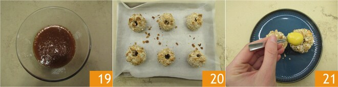 Misture e reserve para esfriar 19. Retire as maçãs do forno 20 e coloque-as em um prato de servir, recheie com o zabaione 21.