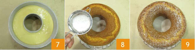 Coloque a mistura em uma forma de anel com diâmetro de 22 cm 7. Asse em forno estático pré-aquecido a 170° por cerca de 50 minutos. Antes de retirar do forno, verifique se o bolo está assado usando o teste do palito: se ao retirar o palito ele sair seco, significa que a sobremesa está pronta. Deixe a sobremesa rápida e fácil amornar, depois desenforme sobre uma grade para esfriar completamente e complete sua receita da sobremesa rápida e fácil com uma polvilhada de açúcar de confeiteiro 8 9.