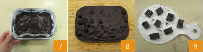 Deixe cristalizar no congelador por 30 minutos 7. Retire o doce da forma 8 e divida-o em cubos de cerca de 3x1,5 cm; sirva o doce vegano de cacau e amarena ainda frio 9!