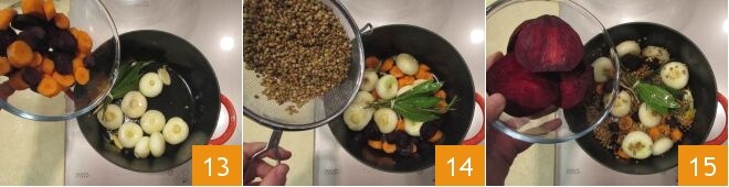 as rodelas de cenoura 13, as lentilhas 14 e as beterrabas 15.