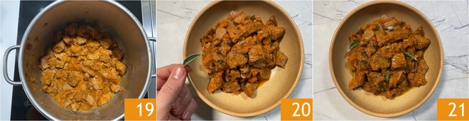 Se quiser um ensopado mais seco, deixe a panela no fogo por mais uns dois minutos 19. Sirva com folhas de sálvia fresca 20 e o seu ensopado na panela de pressão está pronto para servir 21!