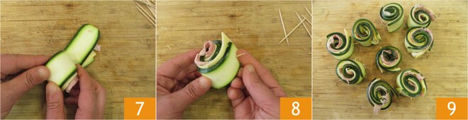 - Rolinhos de abobrinha com presunto cru e queijo tipo robiola