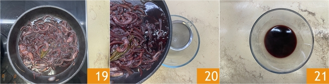Quando as cebolas estiverem macias e o fundo reduzido 19, filtre tudo através de uma peneira 20 para obter um molho liso 21.