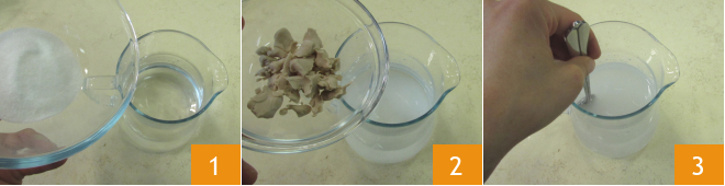 Para preparar os pãezinhos macios, em primeiro lugar, coloque o açúcar 1 e o fermento esfarelado na água morna 2 e misture com uma colher de chá para dissolver tudo 3.
