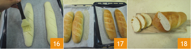 Transfira os pãezinhos obtidos para 2 assadeiras forradas com papel manteiga, posicionando a junção para baixo. Faça cortes na superfície, depois pincele com a mistura de gema e água 16 e deixe crescer por mais 30 minutos. Após esse tempo, asse uma assadeira de cada vez em forno ventilado pré-aquecido a 180° por cerca de 30 minutos, posicionando-a na prateleira do meio. Uma vez que os pãezinhos estiverem assados 17, retire do forno e deixe esfriar em uma grade. Seus pãezinhos macios estão prontos para serem degustados 18!