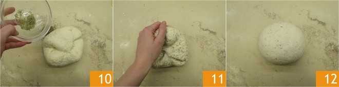 Adicione também as 3 ervas aromáticas secas 10 e sove por mais 5 minutos aproximadamente 11, ou até que a massa fique lisa e homogênea 12.