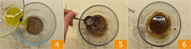 Adicione o óleo 4 e misture bem 5. Reserve 6.
