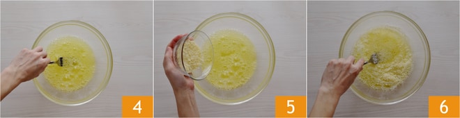 Despeje as claras em uma tigela 4, adicione o Parmigiano Reggiano DOP e o Pecorino ralados 5. Misture tudo 6.