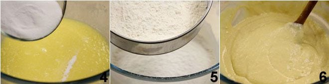 Misture bem e, sempre mexendo, adicione o açúcar 4. Em seguida, incorpore a farinha, o fermento e o sal peneirando-os com uma peneira 5. Misture bem os ingredientes 6, adicione as sementes da vagem de baunilha, cubra a massa com filme plástico e deixe descansar por meia hora na geladeira.