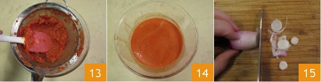 para reter as sementinhas do tomate 13. Você obterá uma mistura densa e homogênea 14. Agora limpe a cebolinha e fatie-a finamente 15.