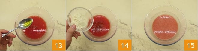 óleo 13, sal, pimenta e farinha de amêndoas 14. Misture tudo com um batedor e coloque na geladeira por uma hora 15.