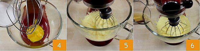 Então, continue com a preparação. Para o sorvete de ricota usam-se ovos crus. Se quiser, você pode pasteurizá-los consultando o procedimento da Escola de cozinha, clicando aqui: Como pasteurizar os ovos. Comece a bater as gemas com o açúcar de confeiteiro: coloque as gemas em uma batedeira (ou em uma tigela grande se usar um batedor elétrico ou um batedor manual) e adicione o açúcar de confeiteiro peneirado 4. Em seguida, bata os ingredientes até obter um creme claro e espumoso 5. Depois, adicione o rum (ou o marsala), continuando a bater muito delicadamente a mistura 6.