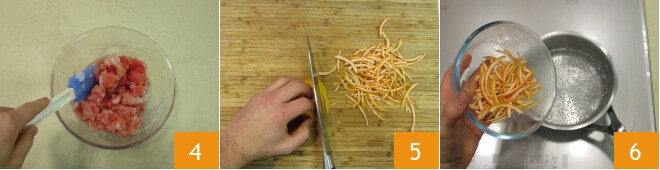 misture e deixe marinar por pelo menos uma hora 4. Enquanto isso, recolha a casca de uma toranja rosa, raspe a parte branca amarga e corte a casca em tiras bem finas 5. Coloque a casca obtida em uma panela com água fervente e cozinhe por cerca de 1 minuto 6.