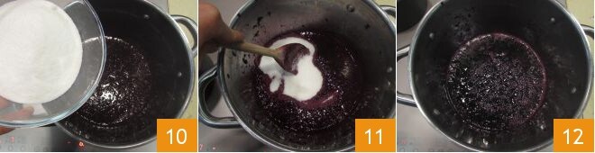 Coloque tudo de volta na panela, adicione o açúcar 10, misture 11 e cozinhe em fogo baixo até atingir uma temperatura de 108° (levará cerca de 20 minutos, recomendamos usar um termômetro culinário) 12.