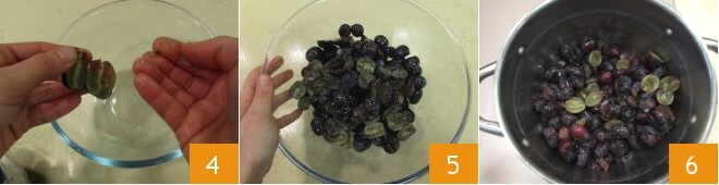 e retire-as à mão (4-5). Coloque as uvas em uma panela grande 6