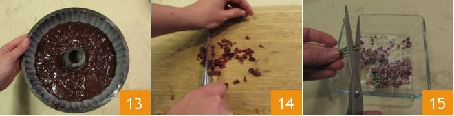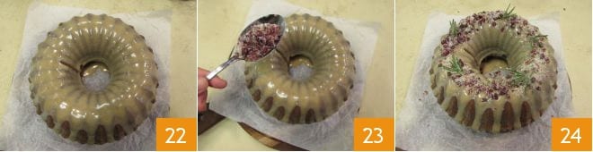 Você deve cobrir toda a superfície 22, decore imediatamente com as cranberries açucaradas 23. O bolo gingerbread bundt está pronto para ser saboreado 24.