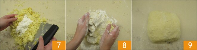 Comece a amassar 7 adicionando a farinha aos poucos 8. Você deve obter uma massa macia, mas não pegajosa 9.
