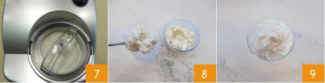 Deixe a sorveteira funcionar por pelo menos 30 minutos 7. Após esse tempo, você obterá uma mistura com consistência cremosa e compacta. Em seguida, transfira a granita para copos, de preferência gelados, para que não derreta rapidamente 8 e sirva a granita de amêndoa como um lanche fresco 9!