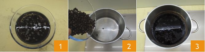 Para preparar os burgers vegetarianos, comece deixando o grão-de-bico preto de molho por pelo menos 24 horas 1. Em seguida, escorra-o, enxágue-o e cozinhe em bastante água 2 por cerca de 1 hora a 1h30, até que fique macio. Uma vez cozido 3, escorra e deixe amornar.