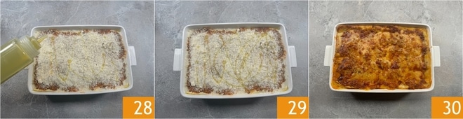 e um fio de azeite por cima 18. Cozinhe 29 no forno estático pré-aquecido a 180° por cerca de meia hora, adicionando alguns minutos de grill para uma douração extra, se necessário! As lasanhas ao ragu de lentilhas estão prontas para serem servidas 30.
