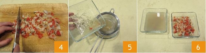 Pique grosseiramente os fasolari 4, com uma peneira de malha fina filtre o líquido recolhido 5 e reserve, separadamente, a água e os frutos 6: lembre-se de que você precisará de 30 g de suco para cozinhar os fasolari e 150 g para fazer o molho bechamel.