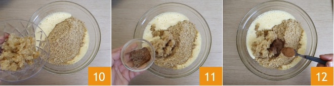 as frutas cristalizadas 10, a mistura de aromas 11 e 5 g de canela 12.