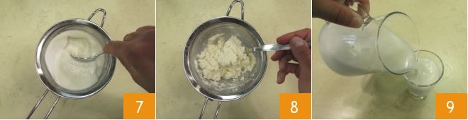 Misture bem com uma colher para separar a parte líquida da sólida (7-8), depois coloque na geladeira a tigela onde você coletou o líquido por pelo menos uma hora, coberta com plástico filme. Sirva seu leite de amêndoa frio ou à temperatura ambiente 9!