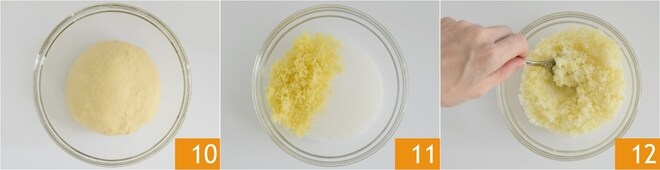 Você deve obter uma massa elástica e homogênea 10. Neste ponto, coloque a massa de volta na tigela, cubra com filme plástico e deixe crescer em temperatura ambiente por cerca de 2 horas ou até dobrar de volume. Enquanto isso, prepare o recheio misturando em uma tigela o açúcar com a casca ralada do limão 11 12. Derreta a manteiga e deixe esfriar.