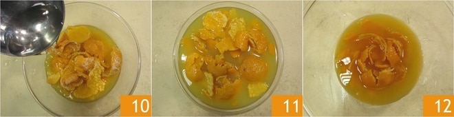 Depois de separar as frutas das cascas 4, cubra estas últimas com álcool puro 5. Deixe macerar por 5 dias em temperatura ambiente coberto com filme plástico, em um lugar fresco e longe da luz 6. Lembre-se de agitar a mistura uma vez por dia.