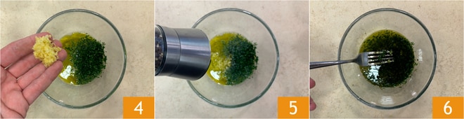 Adicione um pouco de casca de limão ralada 4. Ajuste o sal e a pimenta 5 e emulsione 6.