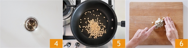 Coloque as uvas-passas de molho em água fria por pelo menos 10 minutos 10. Torre os pinoli em uma frigideira antiaderente por alguns minutos 5. Pique finamente a cebola 6.