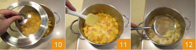 mexendo com uma espátula de vez em quando 11. Se necessário, retire a espuma da mistura 12, para que sua geleia não fique opaca.