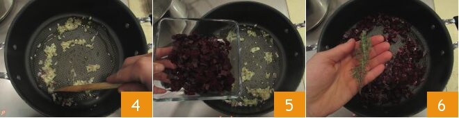 Deixe dourar por alguns instantes 4. Adicione a beterraba 5 e perfume o tempero com tomilho desfolhado 6.