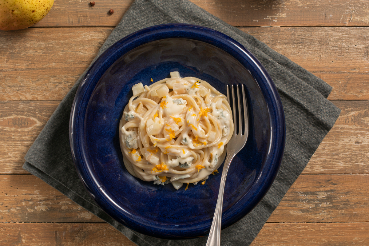 Para completar o prato, você pode adicionar um punhado de nozes torradas ou, como fizemos, um pouco de raspas de laranja, para um contraste crocante e aromático que tornará sua massa com pera e gorgonzola ainda mais especial. Uma união perfeita entre doce e salgado, macio e intenso, que fará você redescobrir o prazer de um prato simples mas com caráter único.