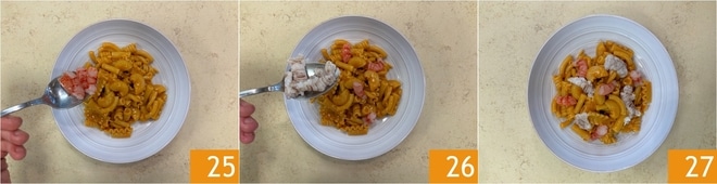 Sirva imediatamente, completando os pratos com os camarões 25 e as tamarutacas 26. A massa mista com tamarutacas e rabos de camarão está pronta para ser saboreada 27!